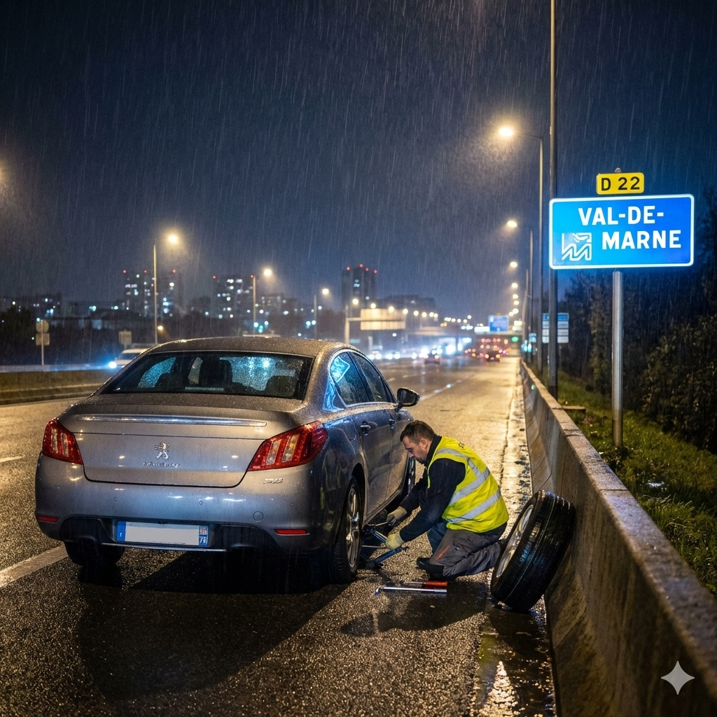 Assistance crevaison et changement de roue à Val-de-Marne 24h/24